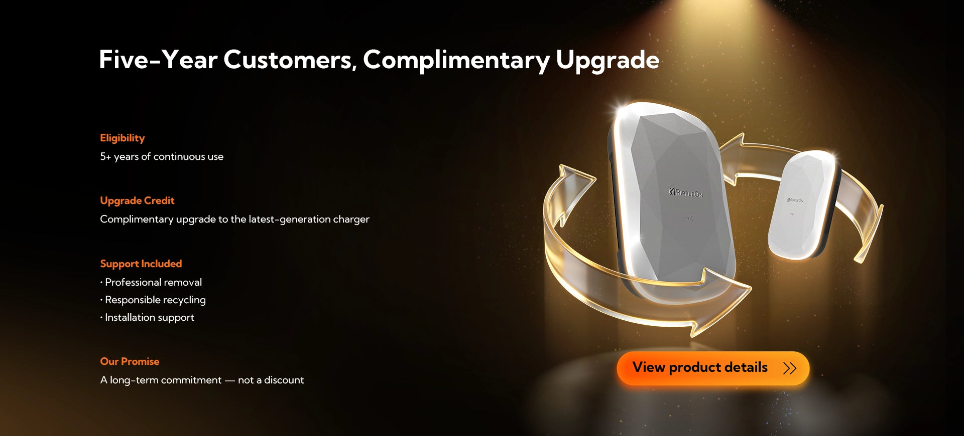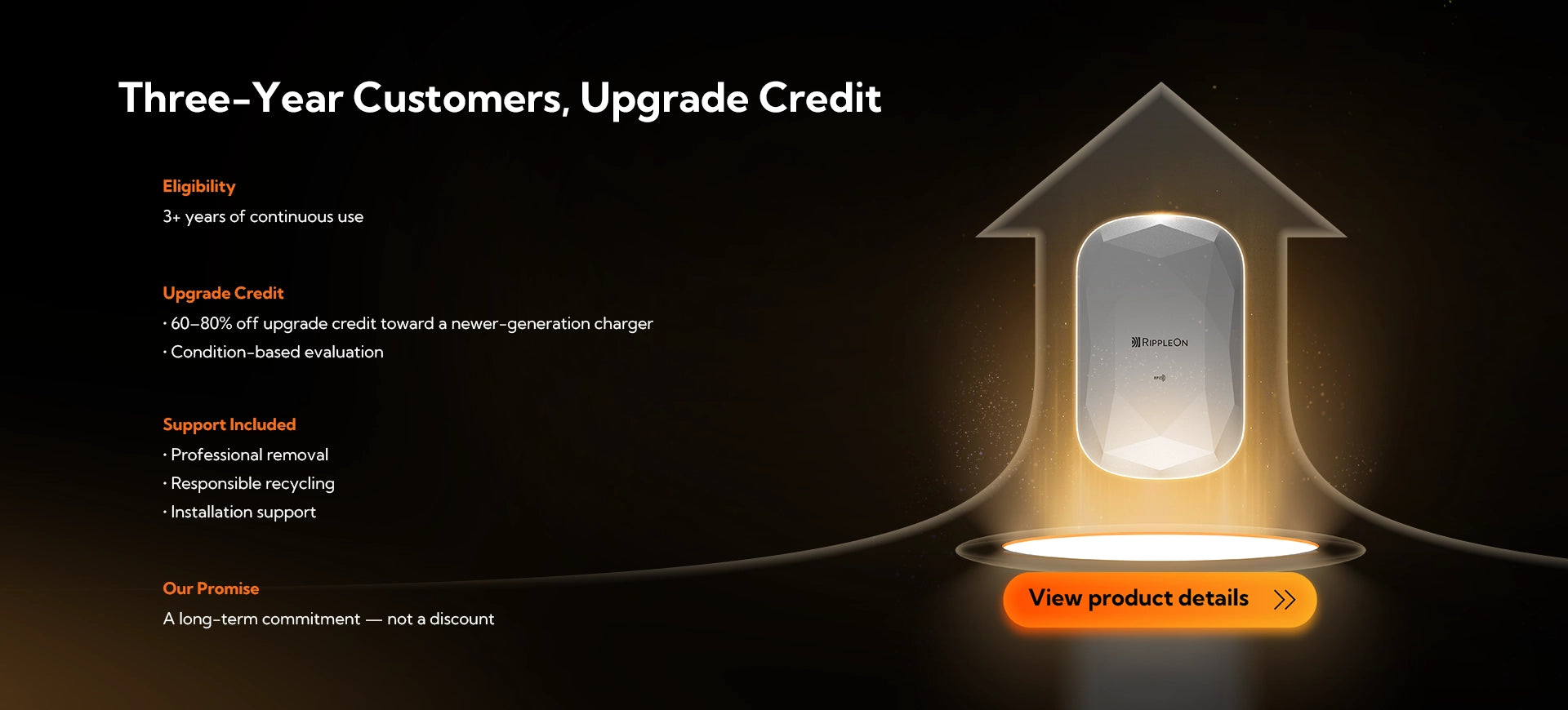 A: You may be eligible if you purchased and have continuously used a RippleOn charger. Eligibility depends on how long you’ve owned the product and whether a newer generation introduces meaningful technological improvements.