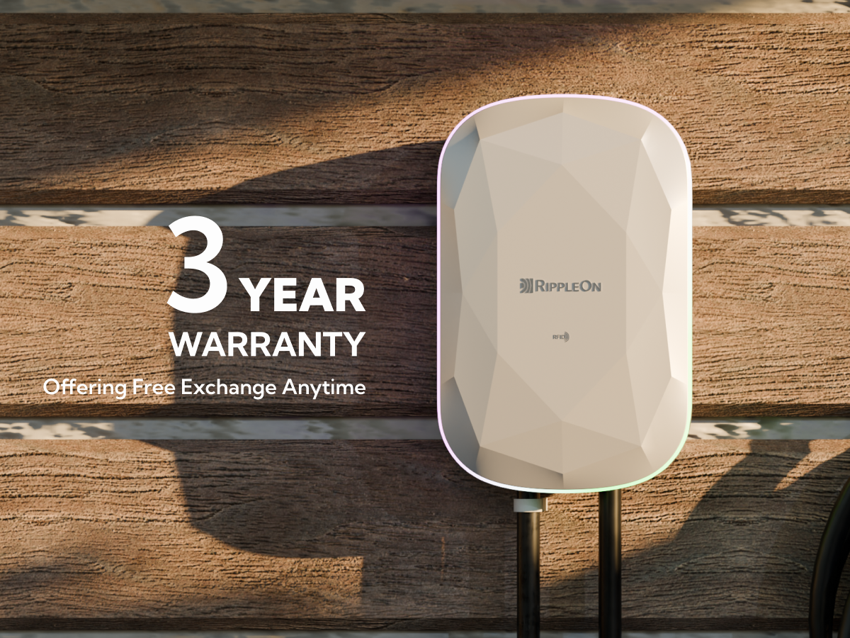 Supported by our exclusive 3-year warranty and a dedicated, support team – proof that your investment is built to last, providing peace of mind from day one. Every charge at RIPPLEON is more than a connection; it’s a step to a cleaner future.